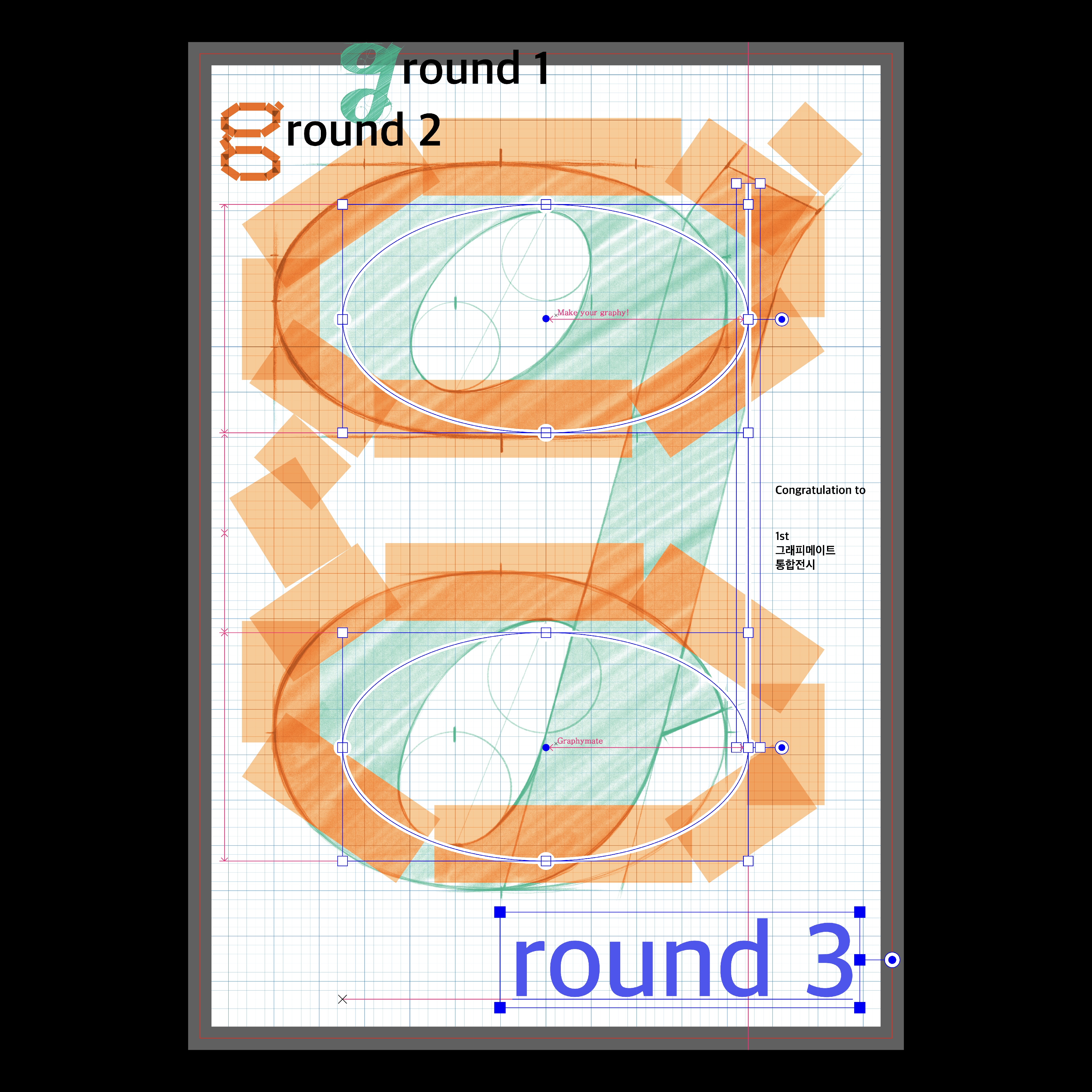 삼세판의 마지막 결승인 Round3를 타이틀로 사용하여 첫 전시를 준비하며 치열하고 고민 많았을 그들의 디자인을 응원하고자 했습니다.